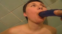 Babe Plays with Blue Dildo, Takes a Dump