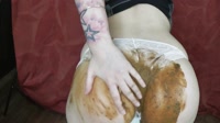 Tattooed Hottie Craps on Red Surface